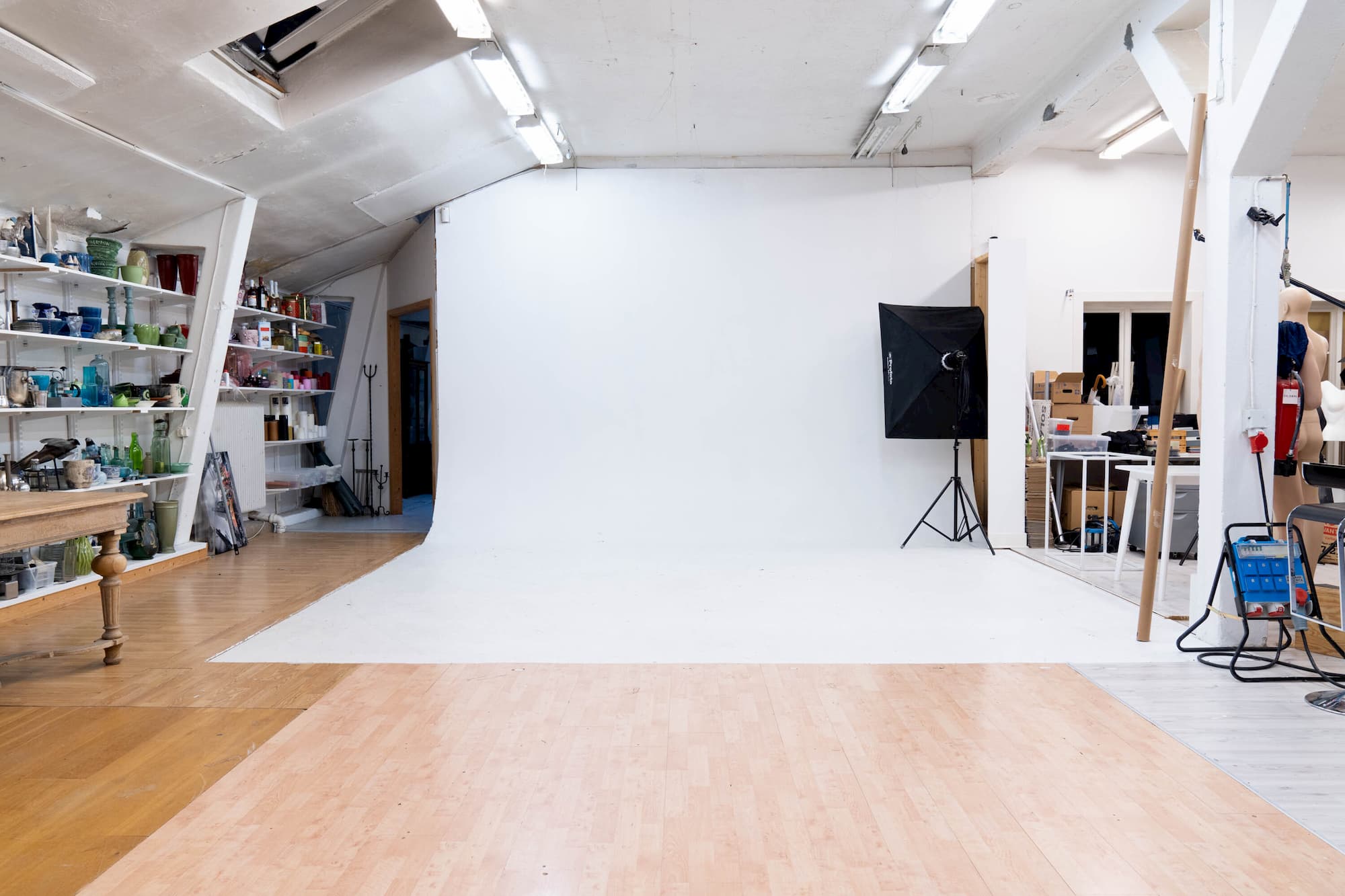 Studion rymmer comfortabelt ett litet team – fotograf, stylist, modell och kund utan problem.